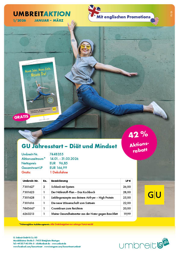 Nutzen Sie unsere Erfahrung und sparen Sie Zeit. Mit den Paketen unterstützen wir Sie effektiv bei der Sortimentsauswahl. Sie möchten eine Titelauswahl zu einem aktuellen Thema? Dann sind unsere Aktionspakete genau das Richtige für Sie. Mit den UmbreitPaket-Abos stellen Sie hingegen sicher, dass Sie für eine Warengruppe immer ein Kompetenzsortiment vorrätig haben.